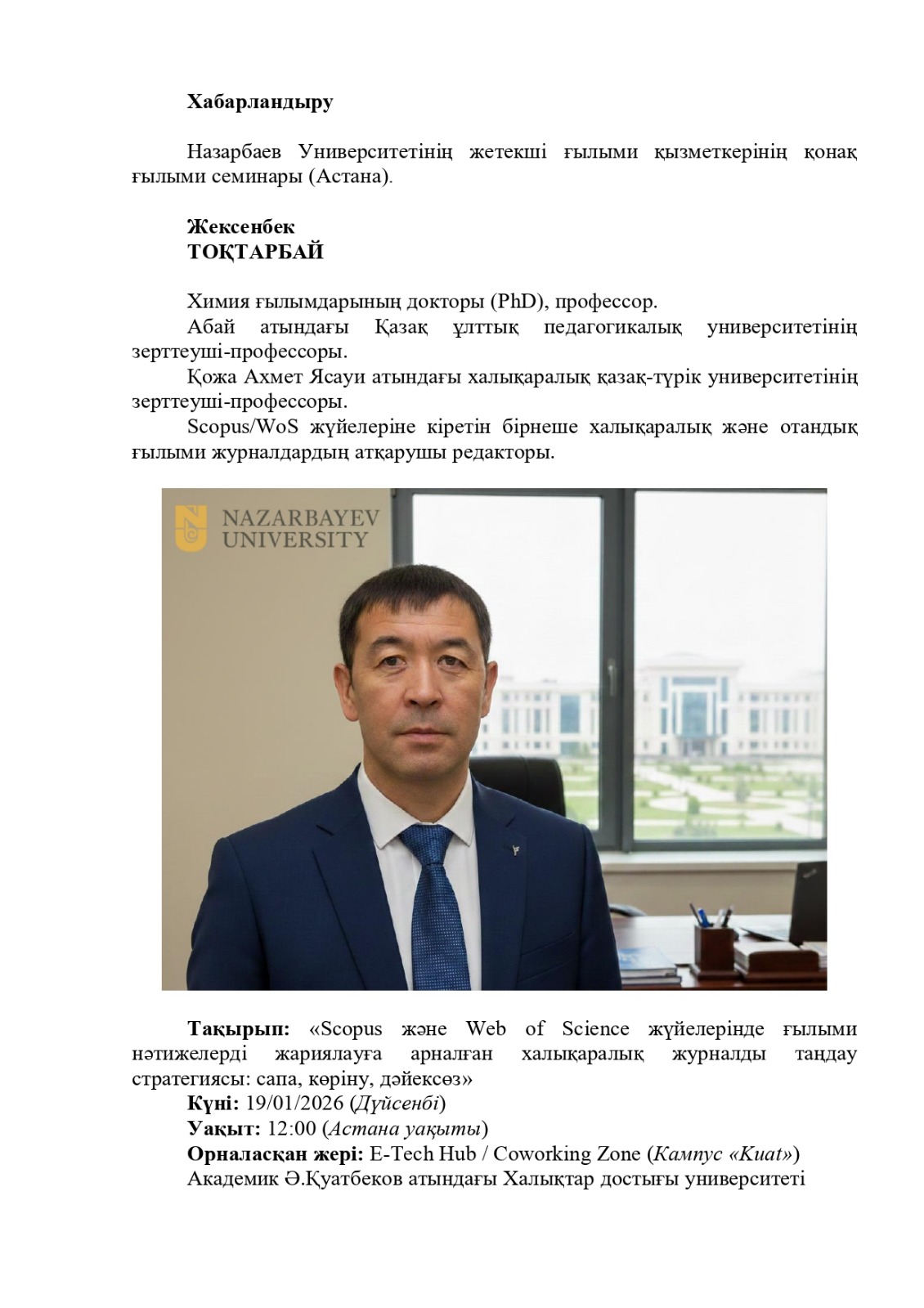 Назарбаев Университетінің жетекші ғылыми қызметкерінің қонақ ғылыми семинары (Астана)
