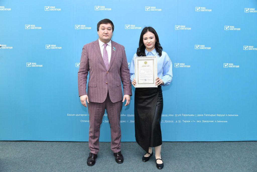 Қазақстан Республикасының Президенті Қасым-Жомарт Тоқаев атынан Алғыс хат академик Ә. Қуатбеков атындағы Халықтар достығы университетінің гуманитарлық-педагогикалық факультетінің 171-25 тобының білім алушысы Әбдіқайыр Ұлдана Жандосқызына табысталды.