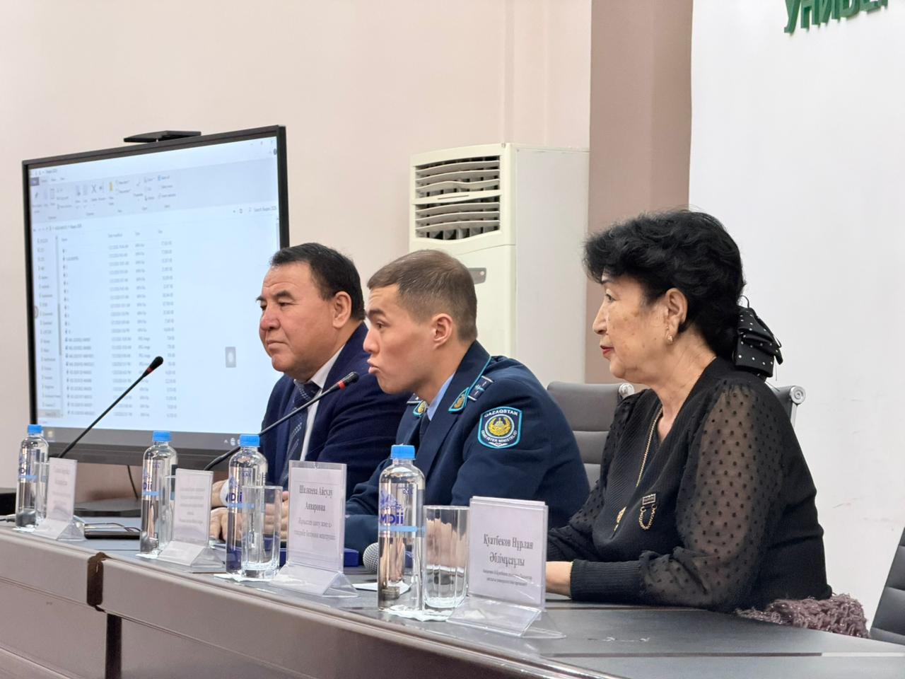 Во встрече приняли участие заместитель командира роты Полка патрульной полиции Департамента полиции города Астаны, капитан полиции А. Муталхан, а также проректор университета по воспитательной и социальной работе Б. Садыков и руководитель отдела трудоустройства и практики А. Шалкеева.