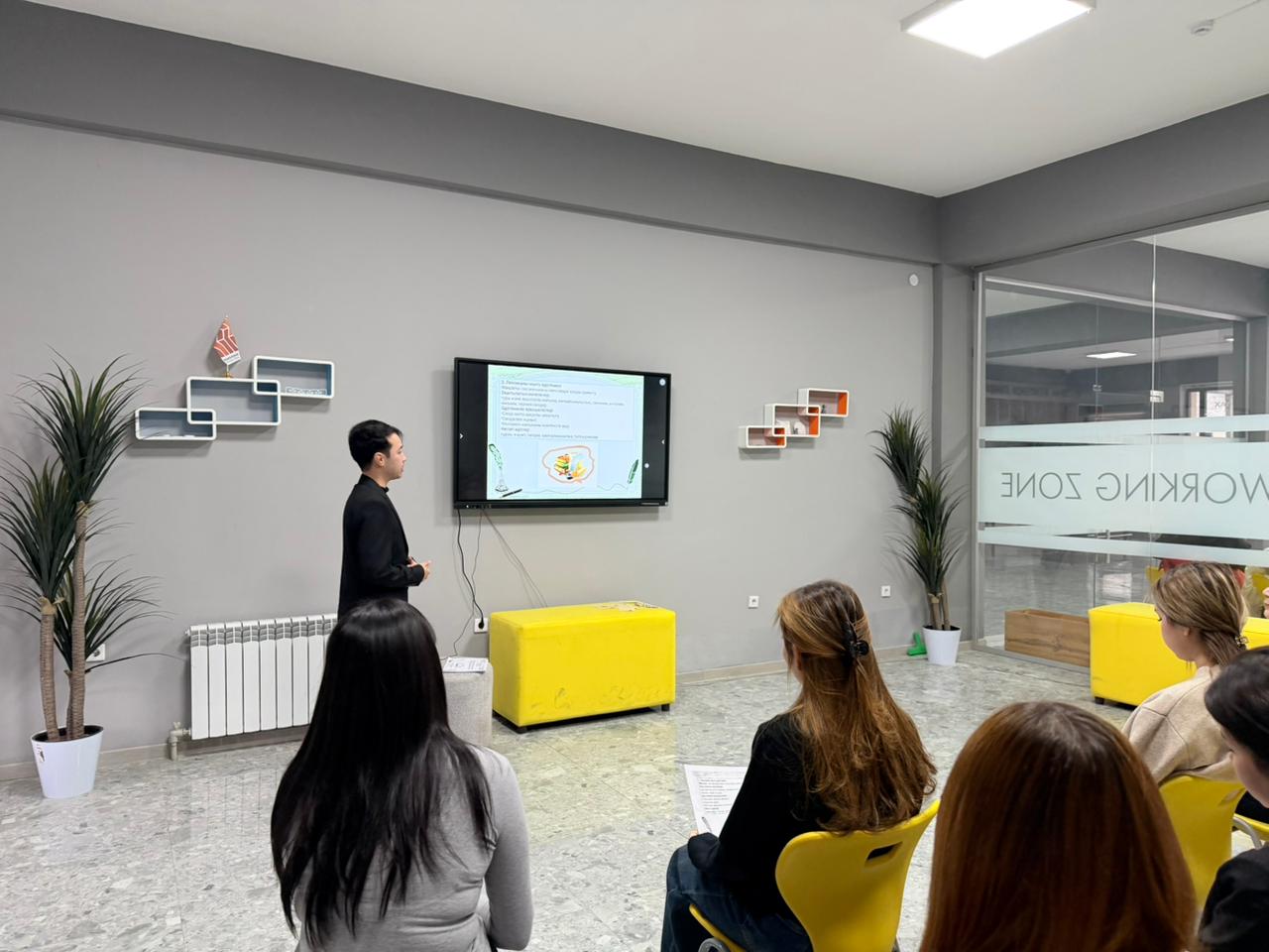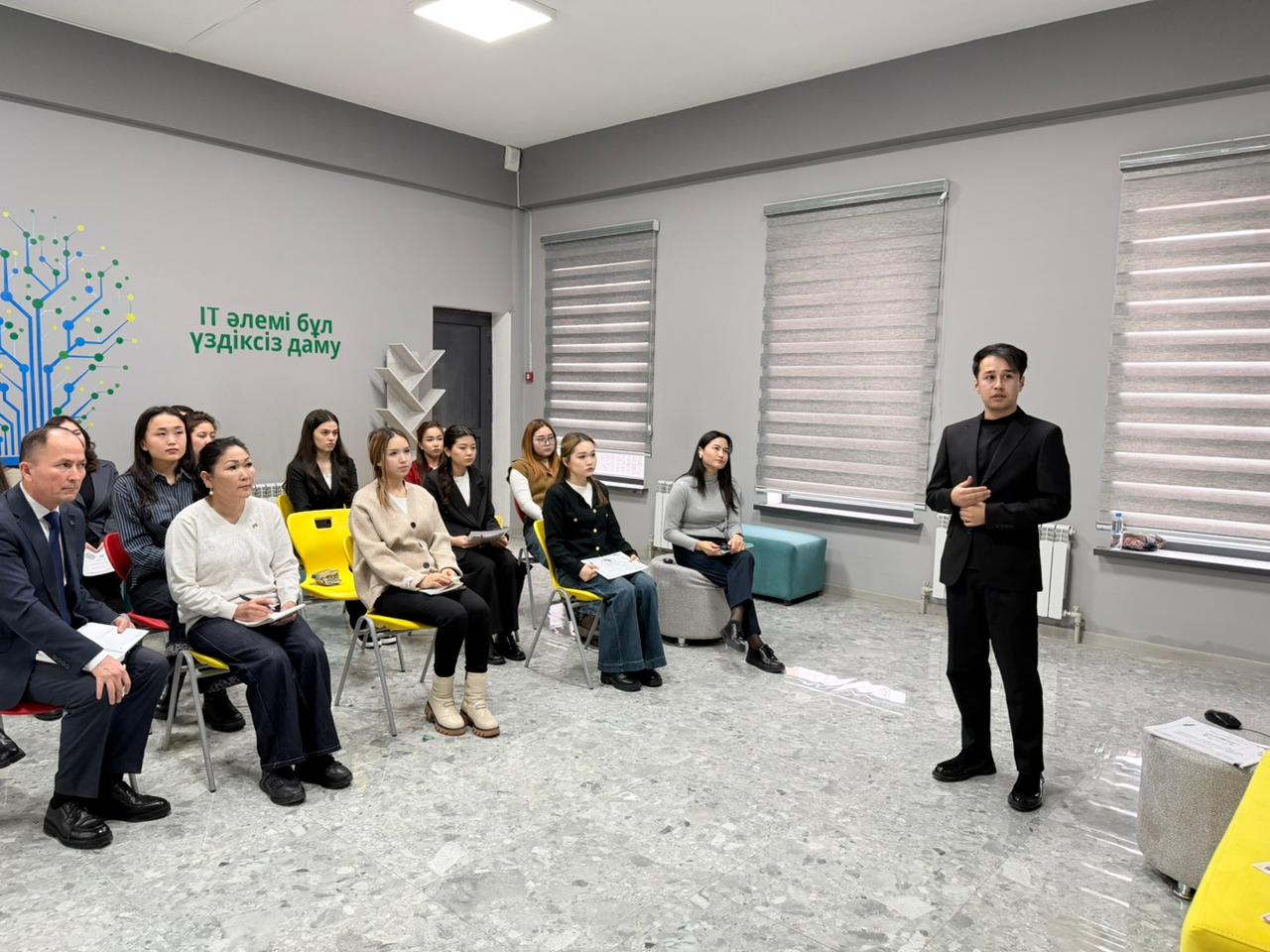 В ходе занятия были продемонстрированы эффективные способы применения технологий искусственного интеллекта в процессе обучения казахскому языку. На основе ИИ-платформ представлены учебно-методические материалы и интерактивные задания, направленные на развитие языковой компетентности обучающихся, формирование профессионального мышления и освоение современных цифровых технологий.