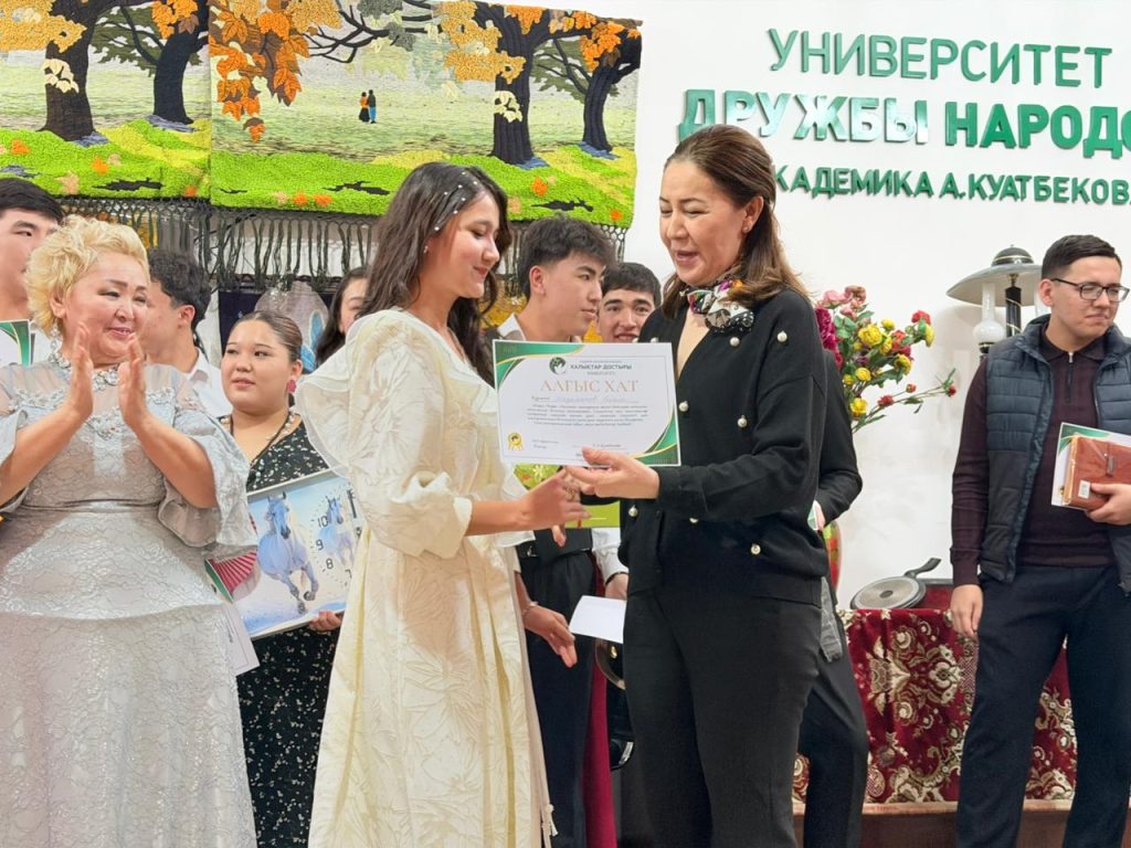 Особым моментом вечера стало участие Ректора университета Р.А. Куатбековой. Рабига Абдумусаевна высоко оценила таланты студентов и в целях стимулирования их интереса к знаниям:
